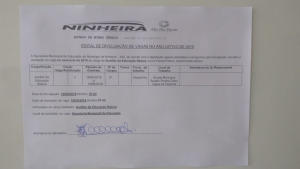 EDITAL DE DIVULGAÇÃO DE VAGA ANO LETIVO DE 2019 - AUXILIAR DE EDUCAÇÃO BÁSICA